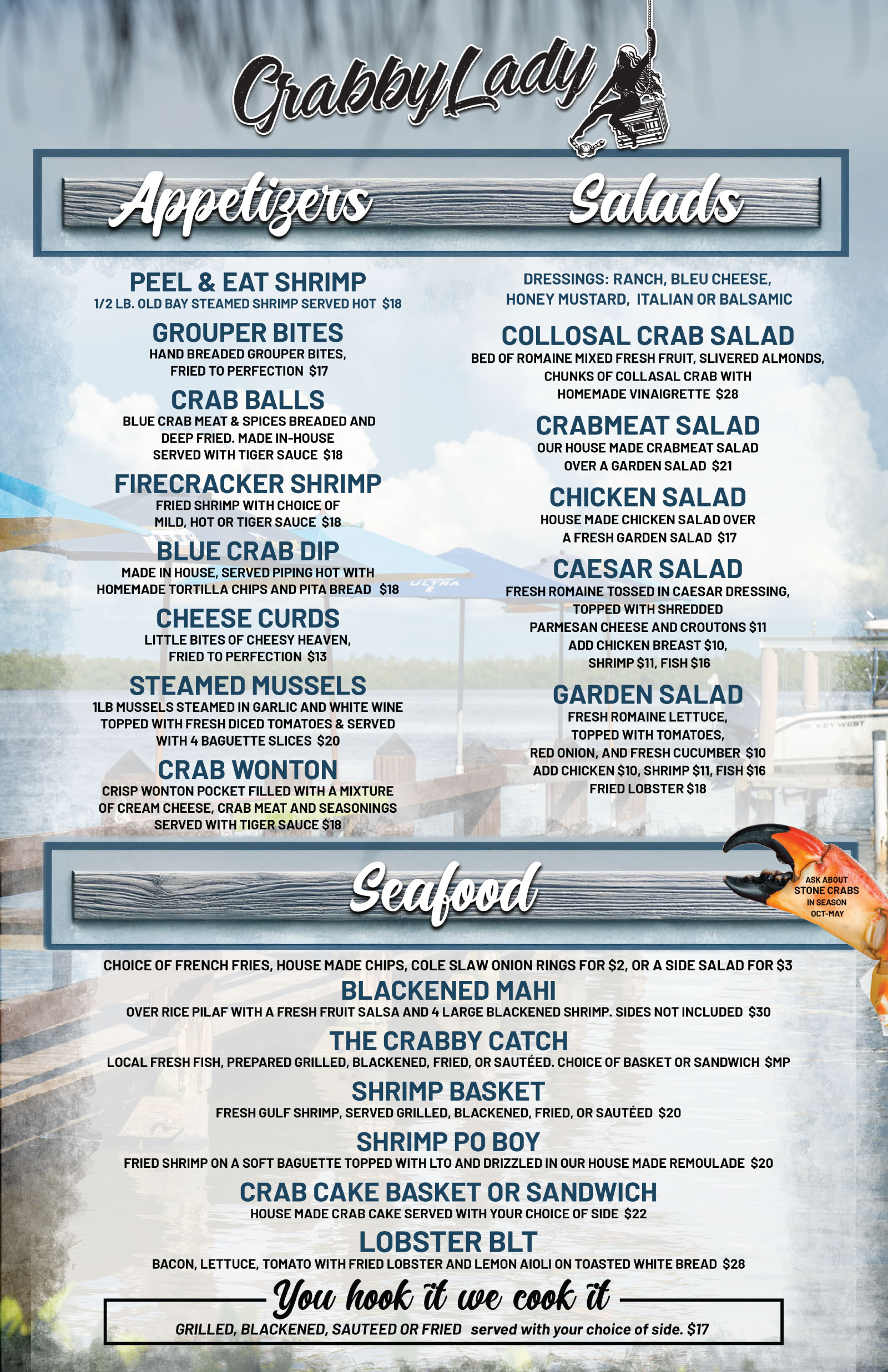 *Notice: Some of our dishes may contain small pieces of shell or bones since they are fresh and hand picked.