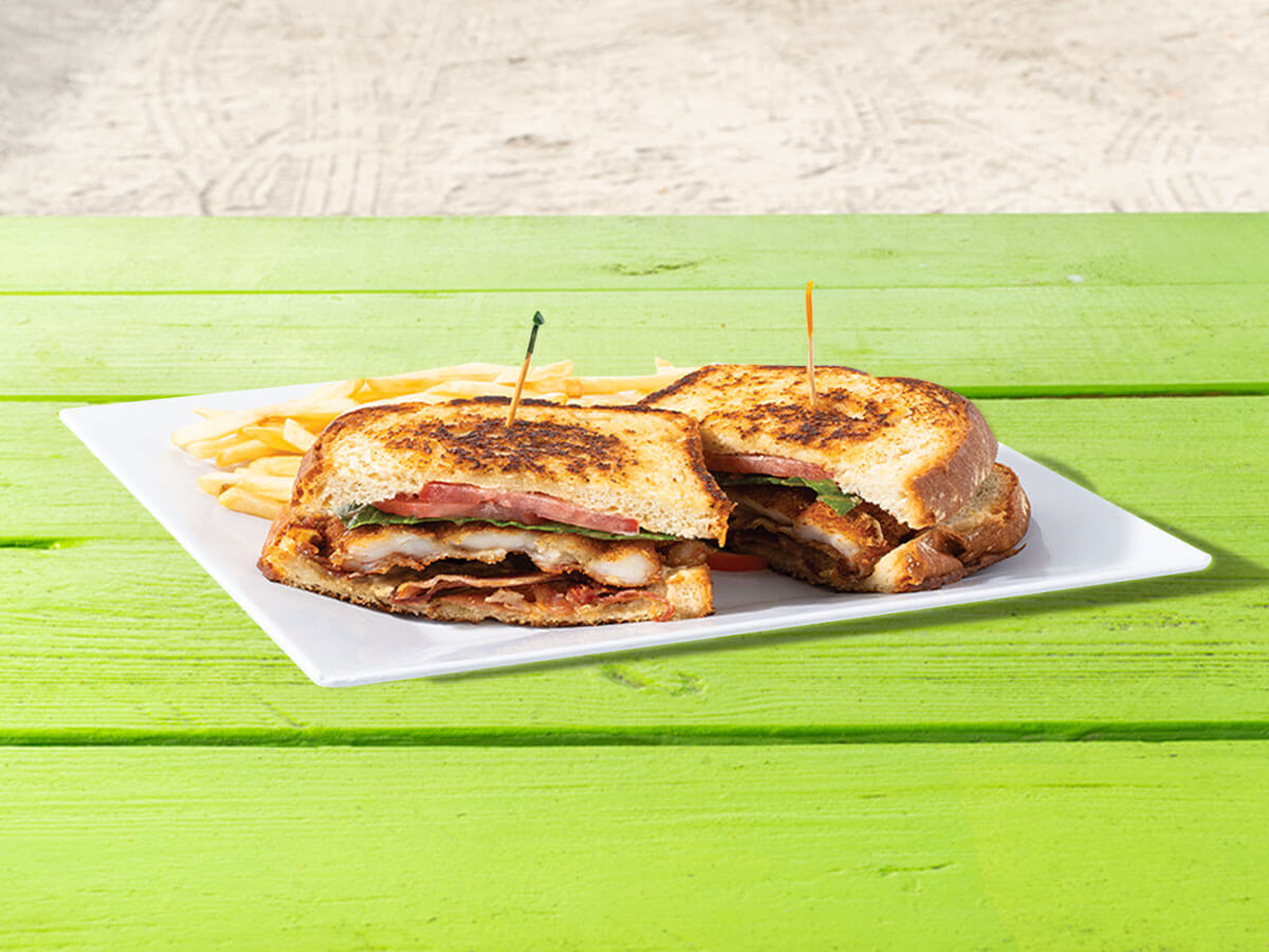 Fried Shrimp on a soft baguette topped with LTO and drizzled in our house made remoulade. $19